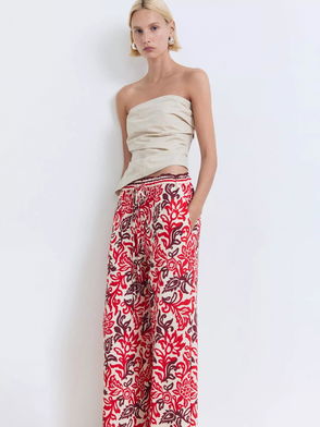 Floral print, Straight fit, Medium waist, Two side pockets, Dart detail, Inside leg measurement 25.75 in Side length 37.24 in.