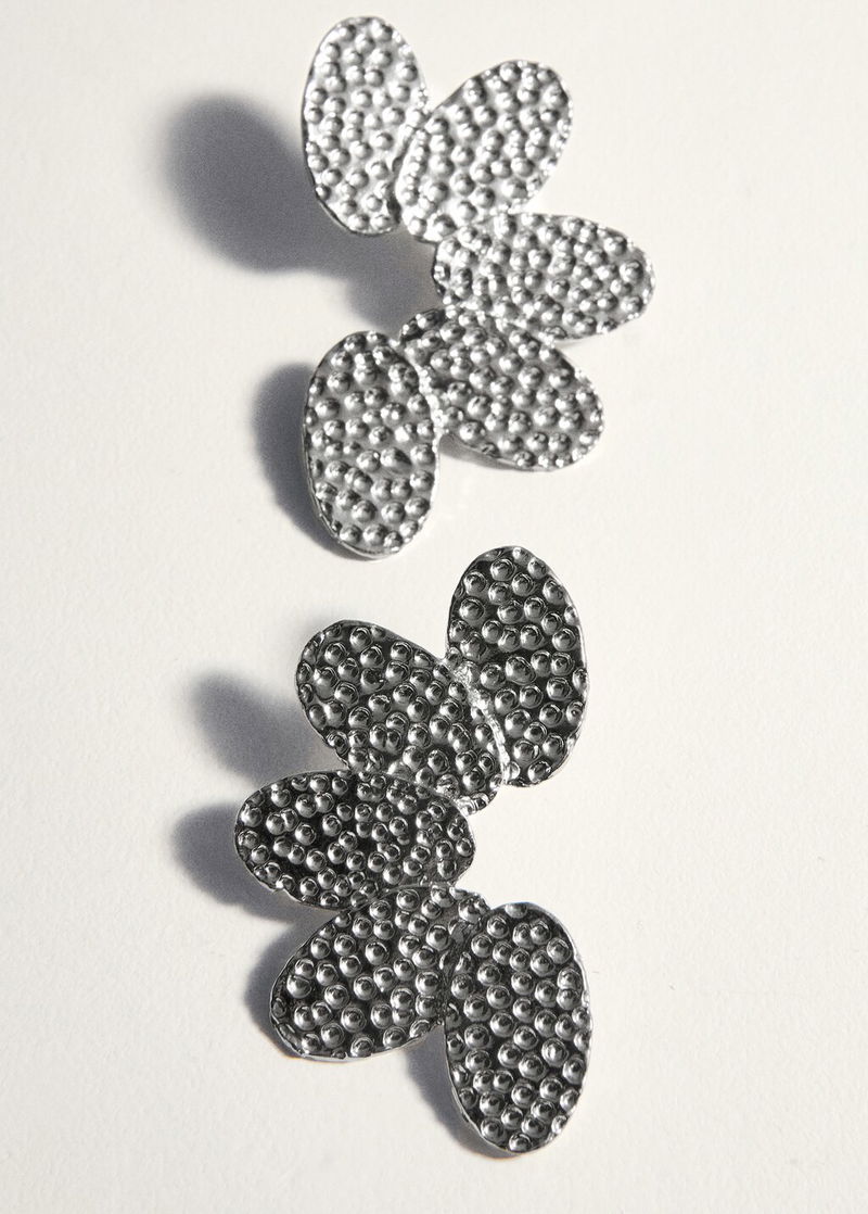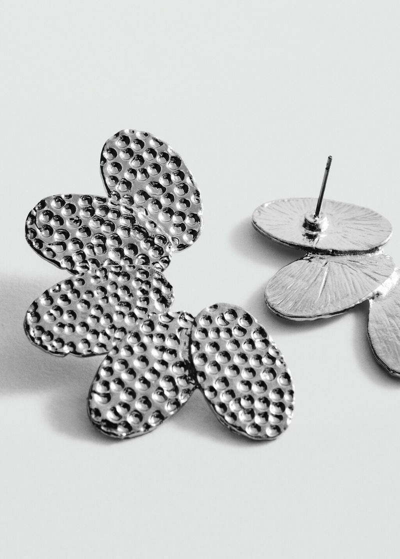 Metallic. Floral design. Textured with relief. Press stud fastening.