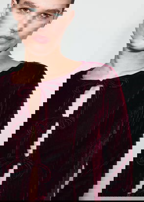 Flowy fabric, V-neck, Short sleeve, Side slits.