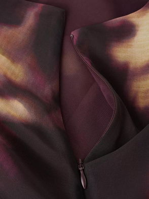 Flowy fabric, Printed design, Flared design, Midi design, V-neck, Long puffed sleeves, Elastic cuffs, Elastic waist, Inner lining, Side length 40.94 in Back length 50.79 in.