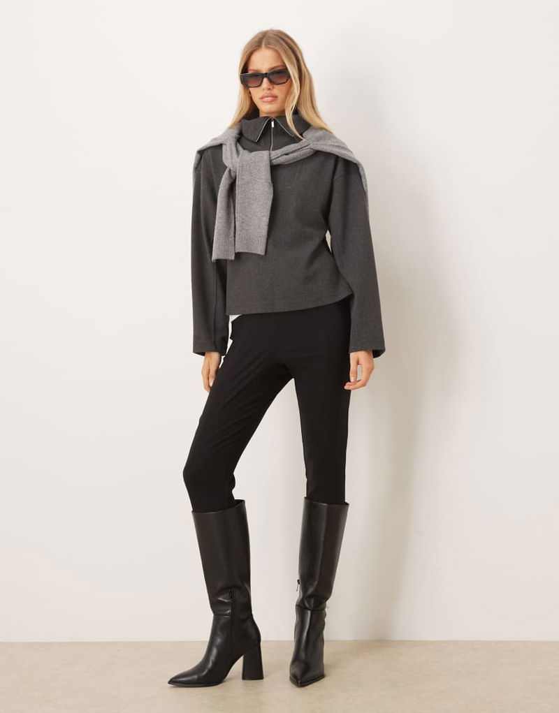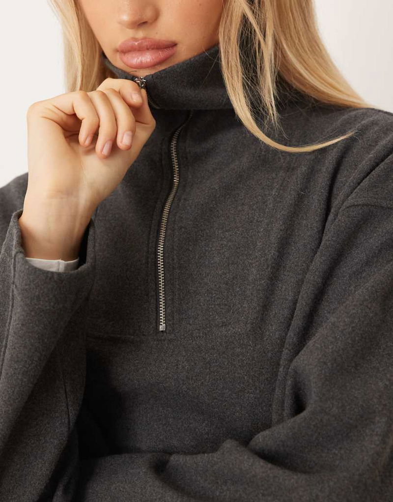 Funnel Neck Half Zip Sweatshirt In Charcoal