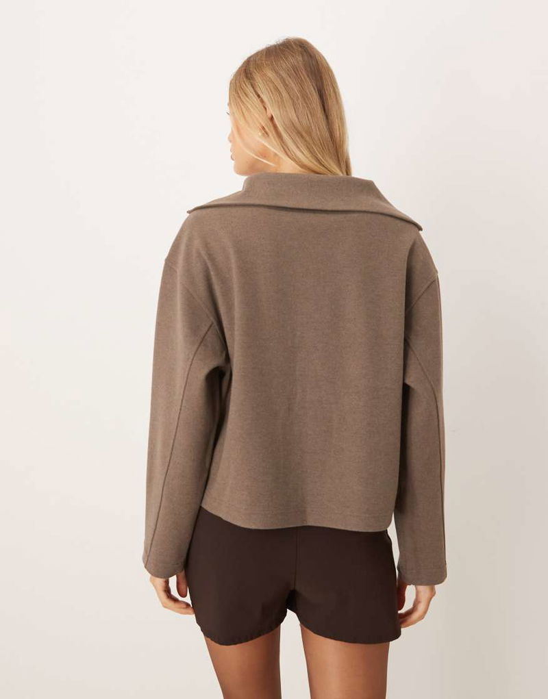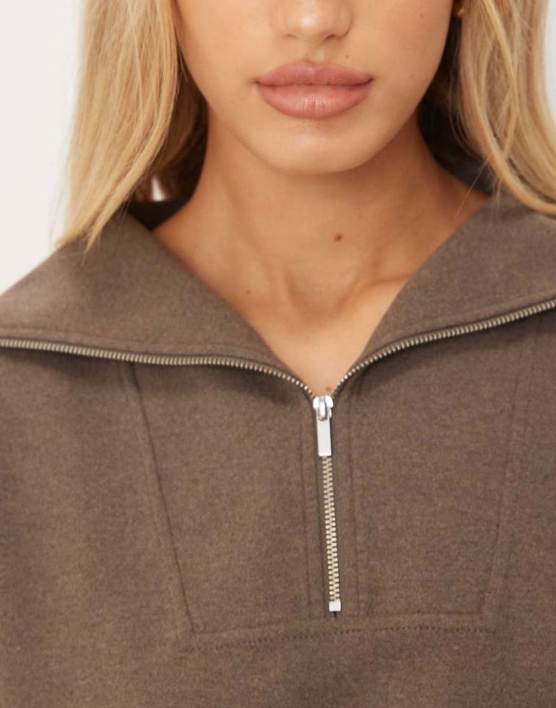 Funnel Neck Half Zip Sweatshirt In Mushroom