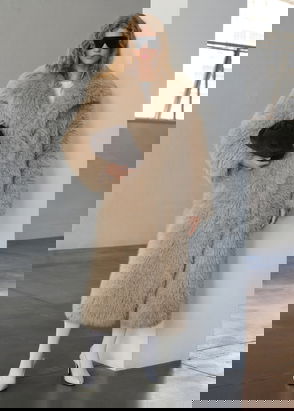 Faux fur effect. Short design. Straight Design. Leopard print. Notched lapel collar. Long sleeves. Two side pockets. Button fastening at the front. Inner lining.
