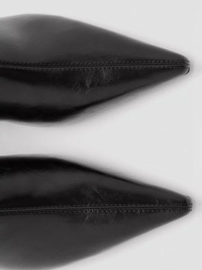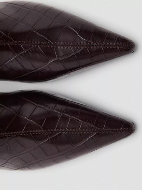 100% Leather, Gathered leg, Pointed, Kitten heel.