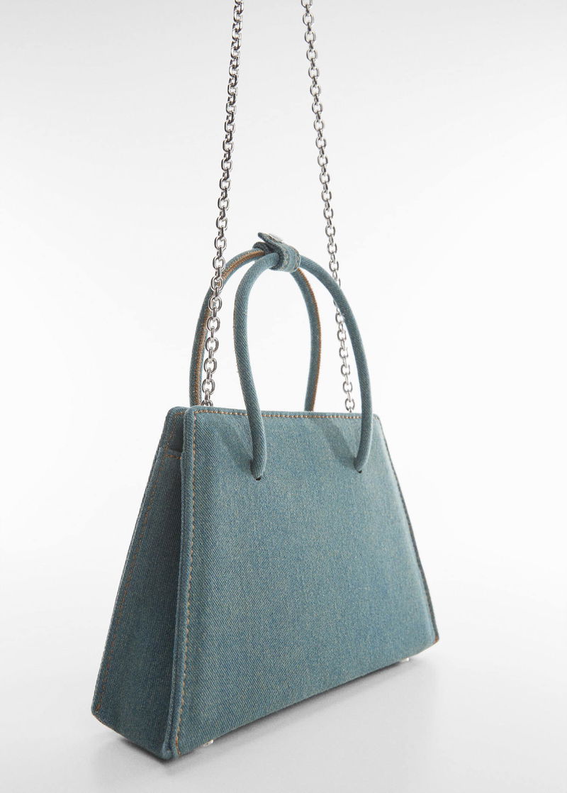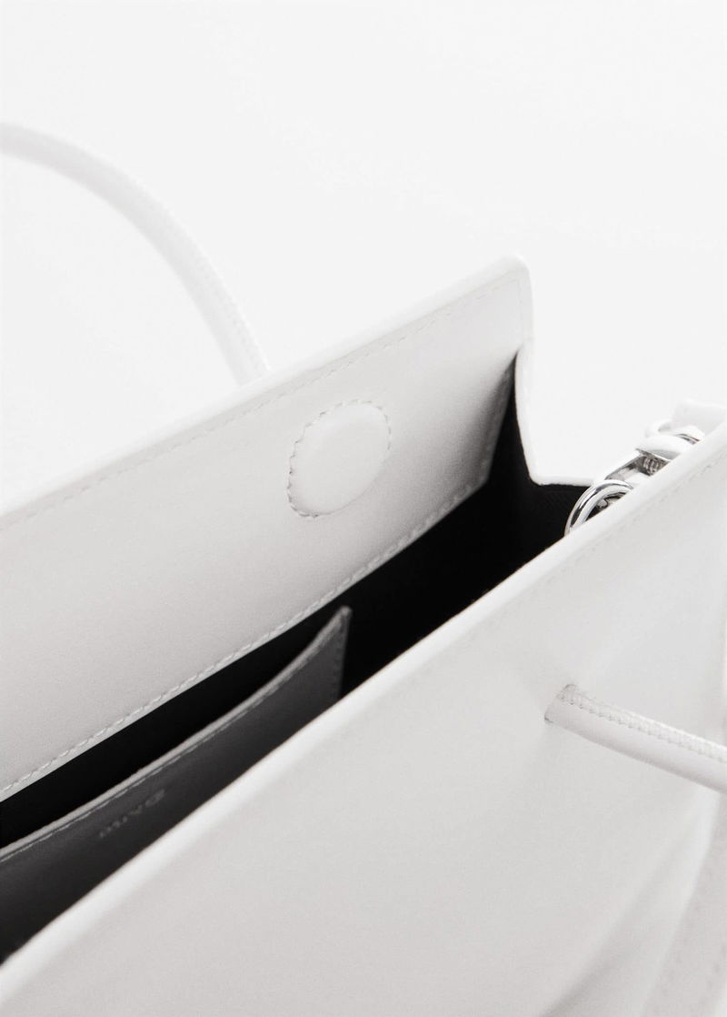 Small, Geometric design, Double handle, Long adjustable strap, Magnetic button closure, Inner lining.