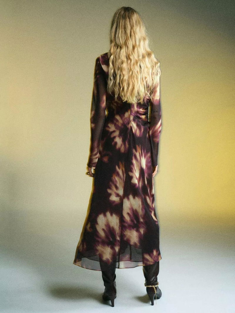 Giady Tie Dye Mesh Midi Dress, Dark Red