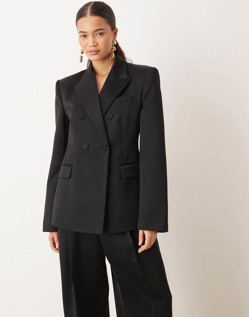 Gilda Satin Look Tailored Blazer Co-ord In Black