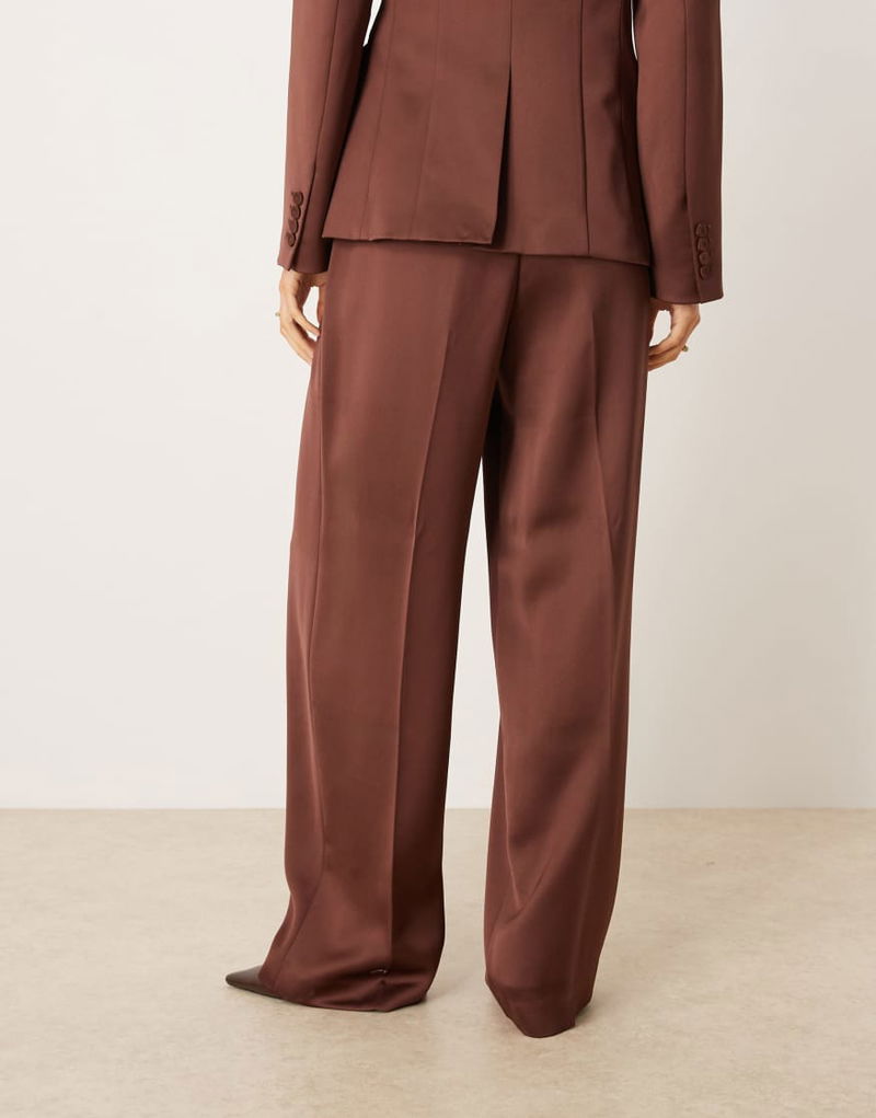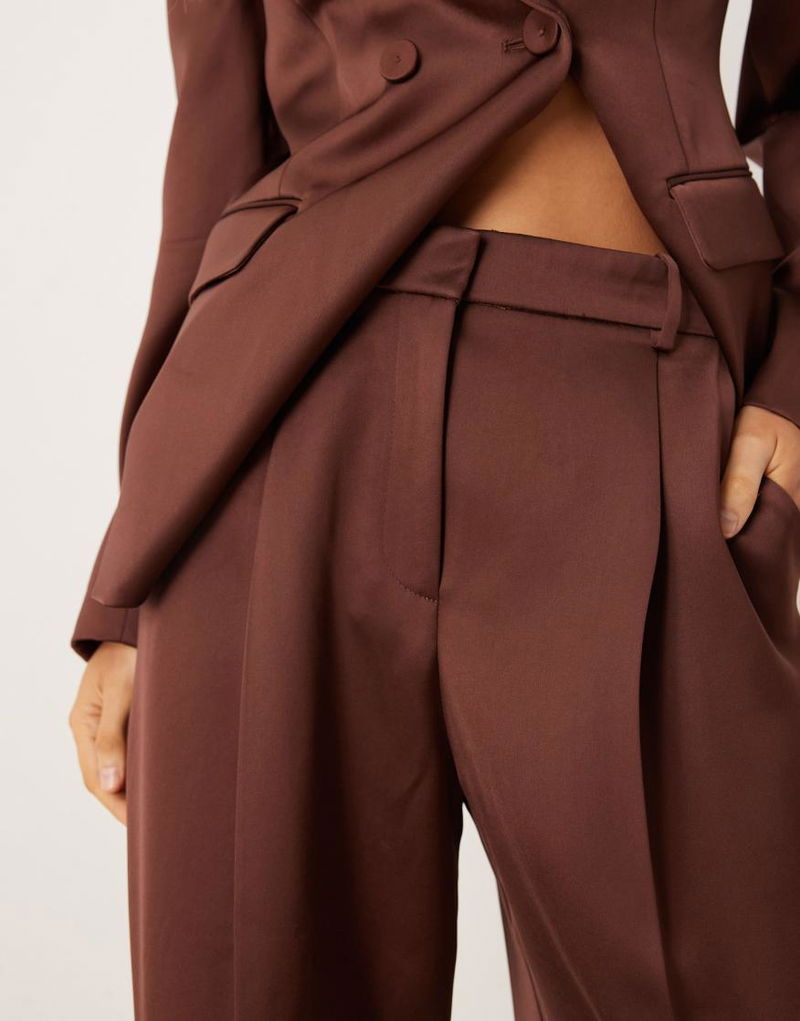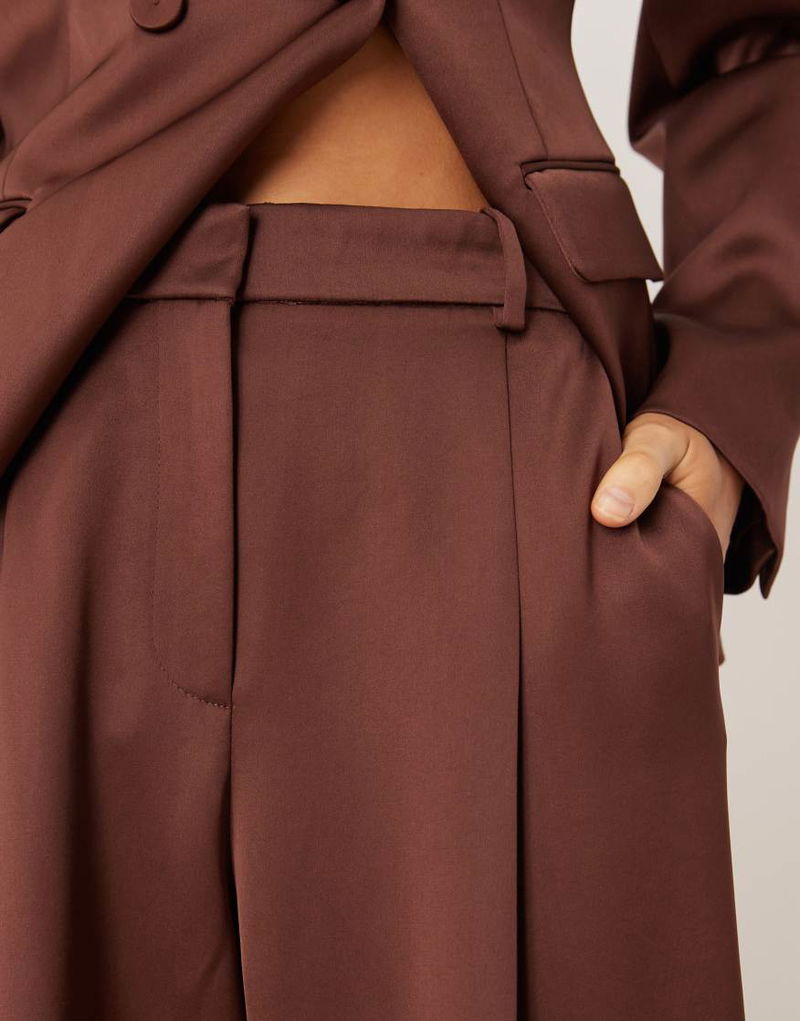 Gilda Satin Tailored Trouser Co-ord In Brown