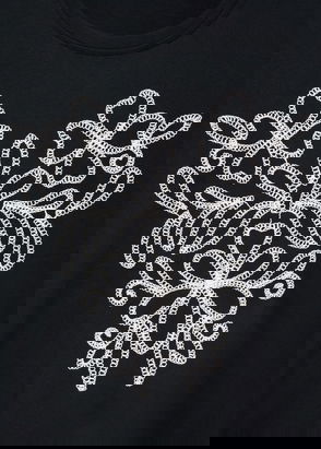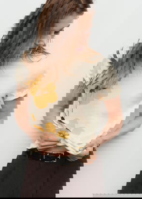 Organic cotton fabric, Printed message, Rounded neck, Short sleeve, Side length 16.18 in Back length 24.41 in.