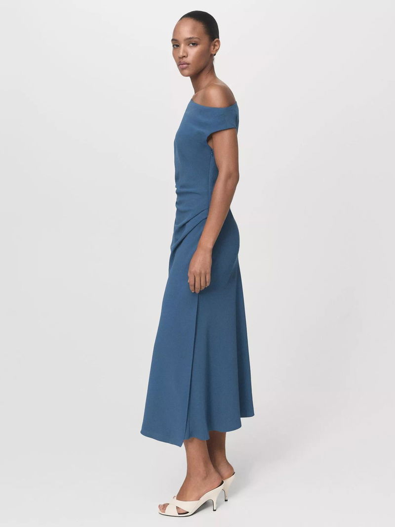 Gloria Ruched Asymmetrical Midi Dress