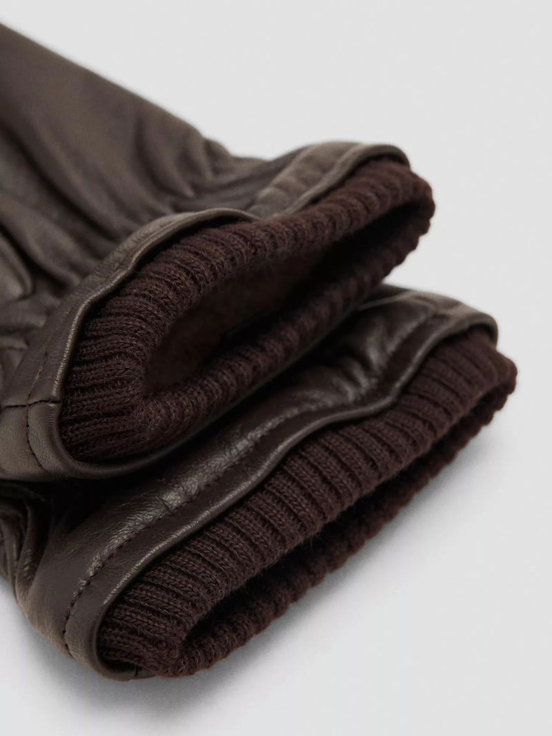 Guantes Elastic Wool Blend Leather Gloves
