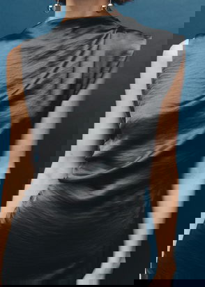 Plain design High neck Sleeveless style Open back Buttoned halter neck Regular fit.