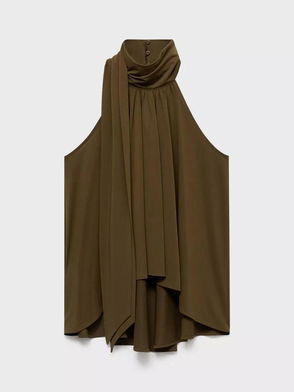 Halterneck Slim Fit Structured Top With Cut Out Bow Detail