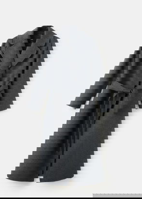 Fabric with wool, Oversize design, Double button design, Long design, Lapel-collar V-neck collar, Lapel with notch, Long sleeve, Dropped shoulder seams, Two side pockets, Double button fastening, Back-slit hem.