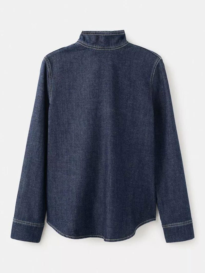 Heritage Mandarin Collar Shirt, Dark Blue