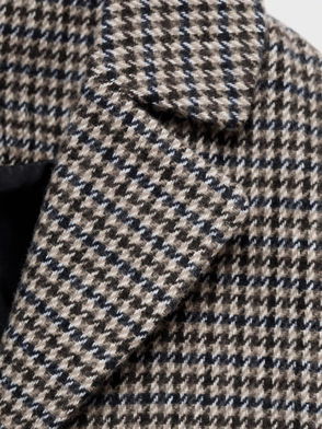 Midi design, Flecked design, Herringbone design, Classic collar, Long sleeve, Two side patch pockets, Button fastening on the front section, Back length 21.26 in.