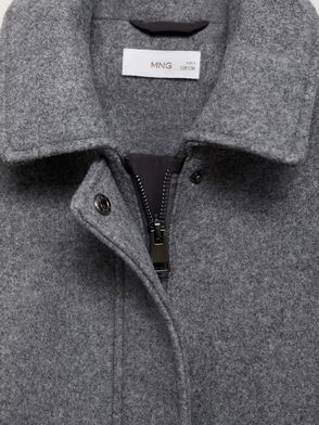 Herringbone fabric, Short design, Lapel-collar V-neck collar, Long sleeve with buttoned cuffs, Two side pockets with flaps, Welt pocket on the back, Back slits.