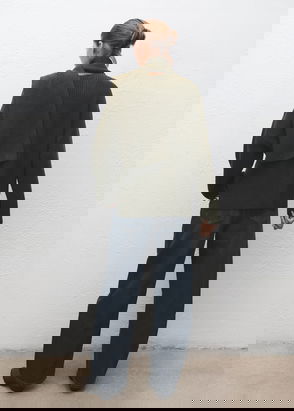 Fine knit fabric, Tailored design, High collar, Long sleeve.
