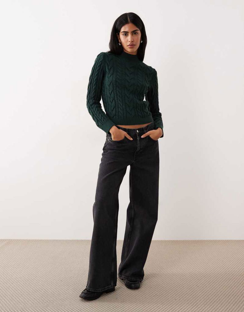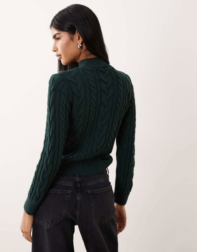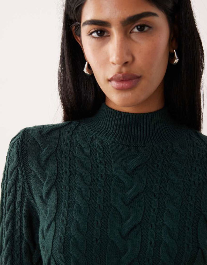 High Neck Cable Knit Jumper In Dark Green
