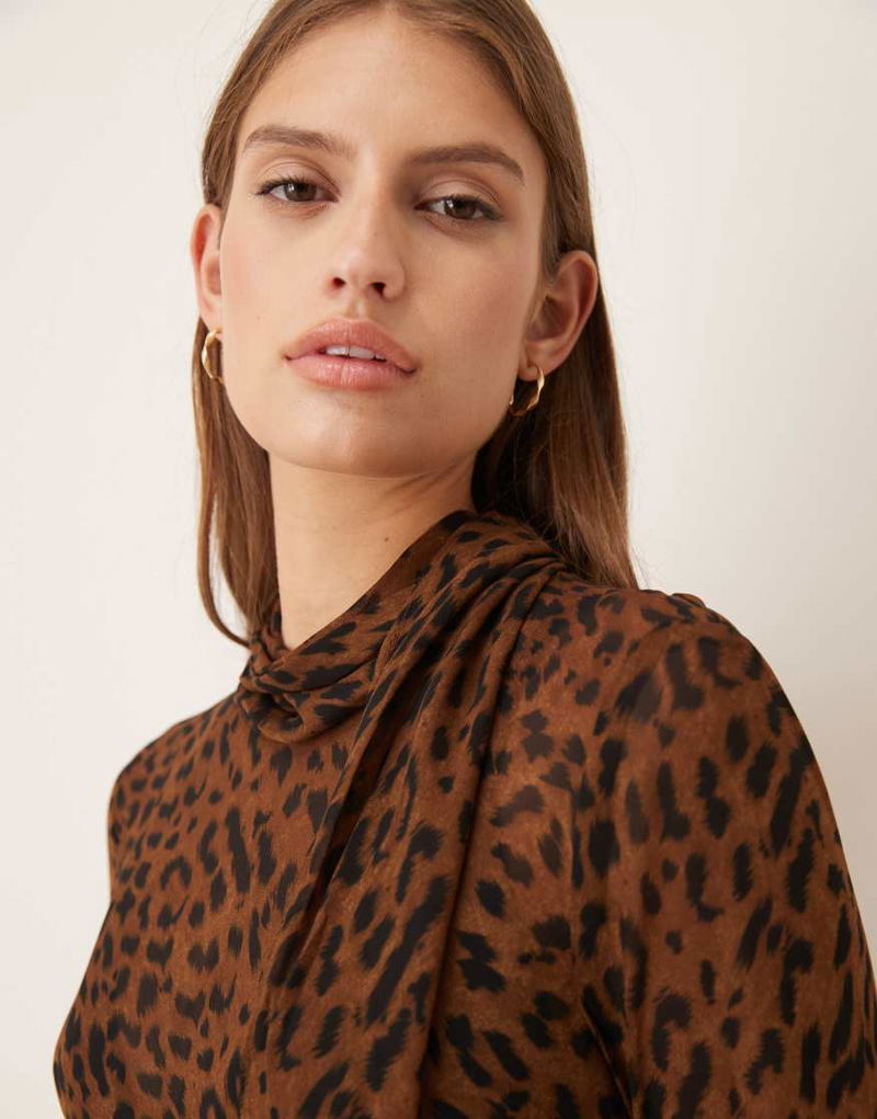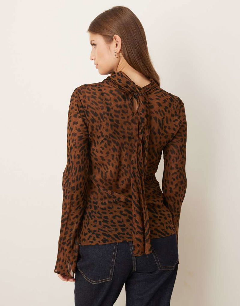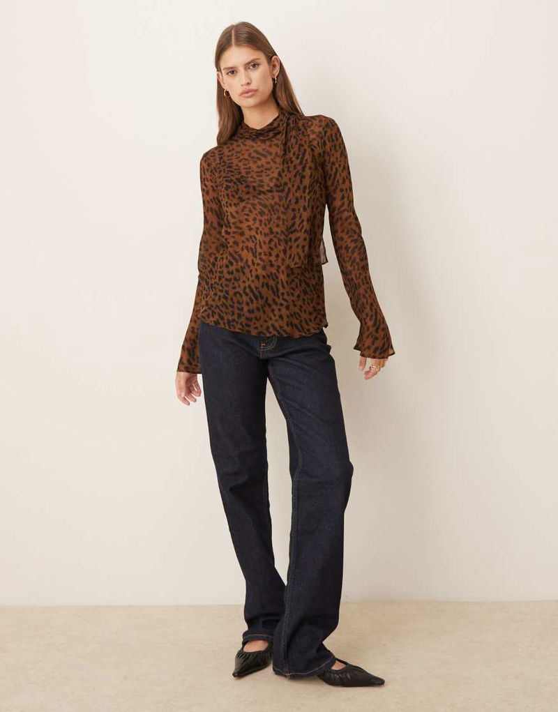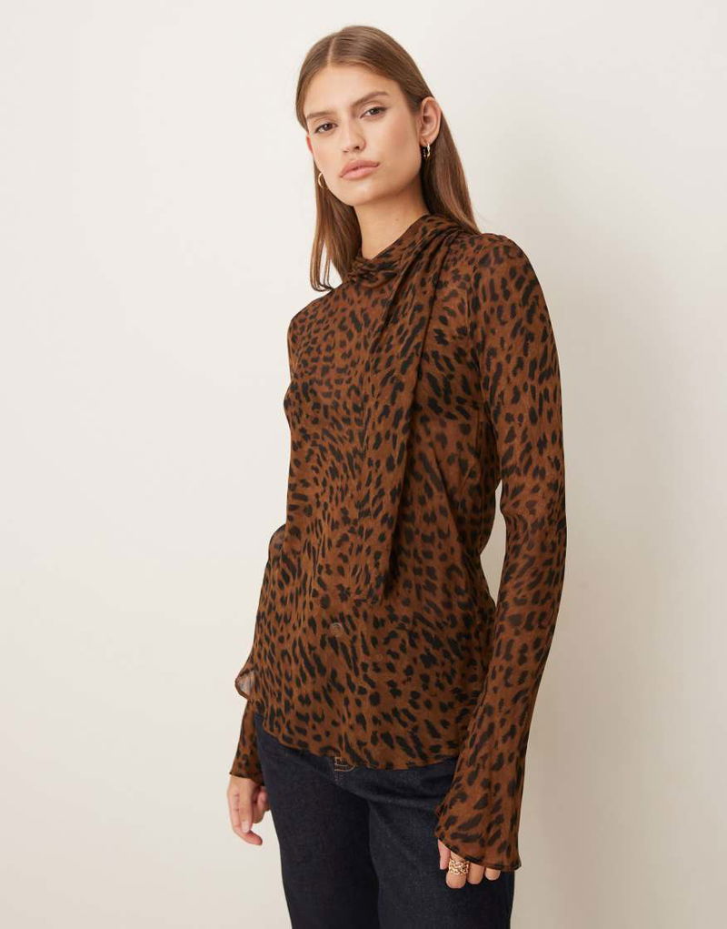 High Neck Long Sleeve Blouse In Leopard Print