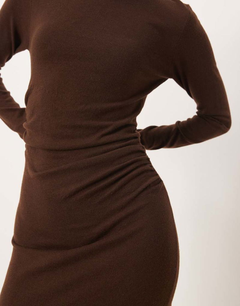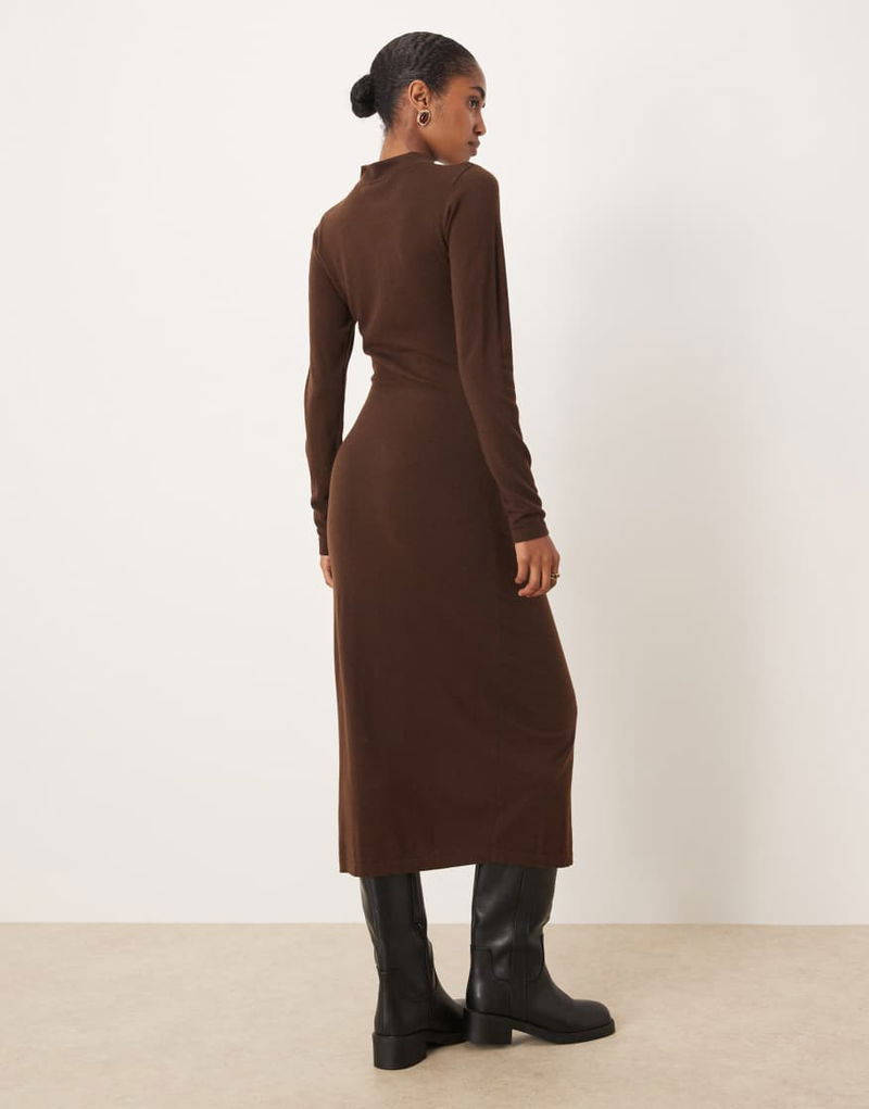 High Neck Ruched Waist Maxi Dress In Brown