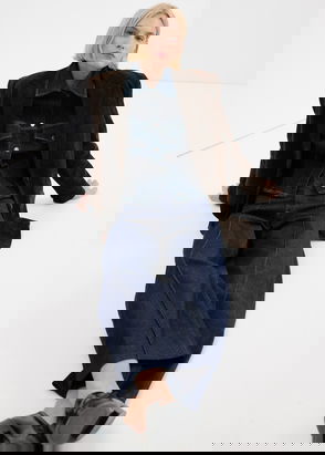 Denim-style cotton fabric. Long design. Wide-leg design. High waist. Belt loops. Five pockets. Button and zip fastening. Inseam 83 cm.
