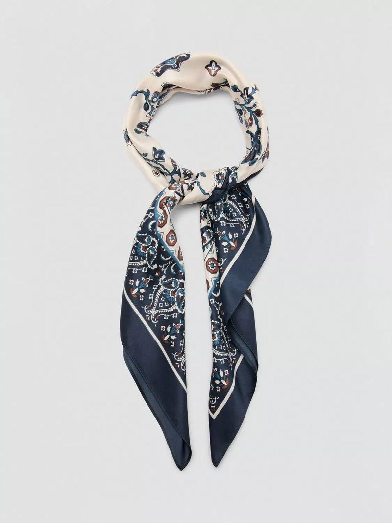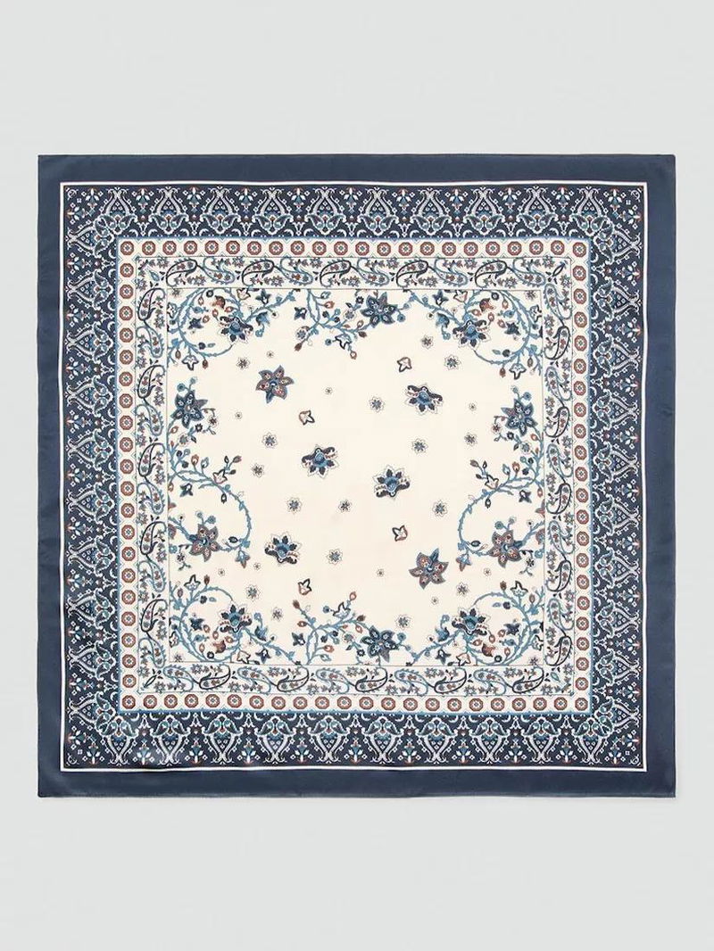 Hojas Square Scarf, Navy/White