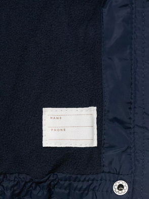 Quilted fabric, Short design, With hood, Rounded neck, Long sleeve with elastic cuffs, Two side pockets, Zip fastening, Back length 13.58 in.