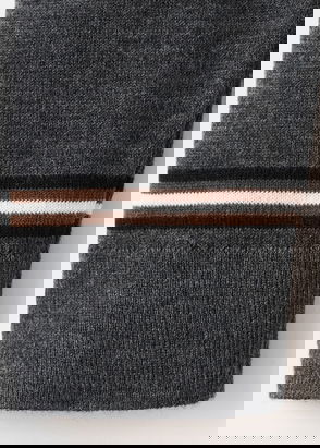 Fine knit fabric, Striped print, Rounded neck, Long sleeve, Decorative buttons, Back length 23.23 in.