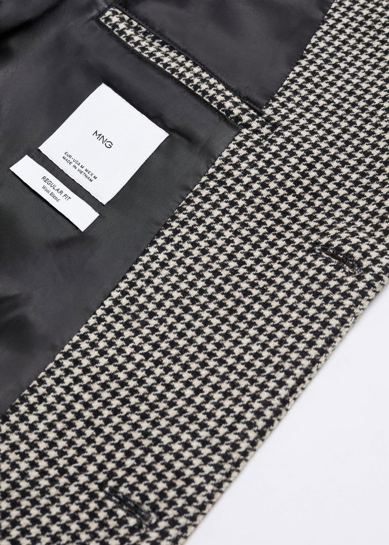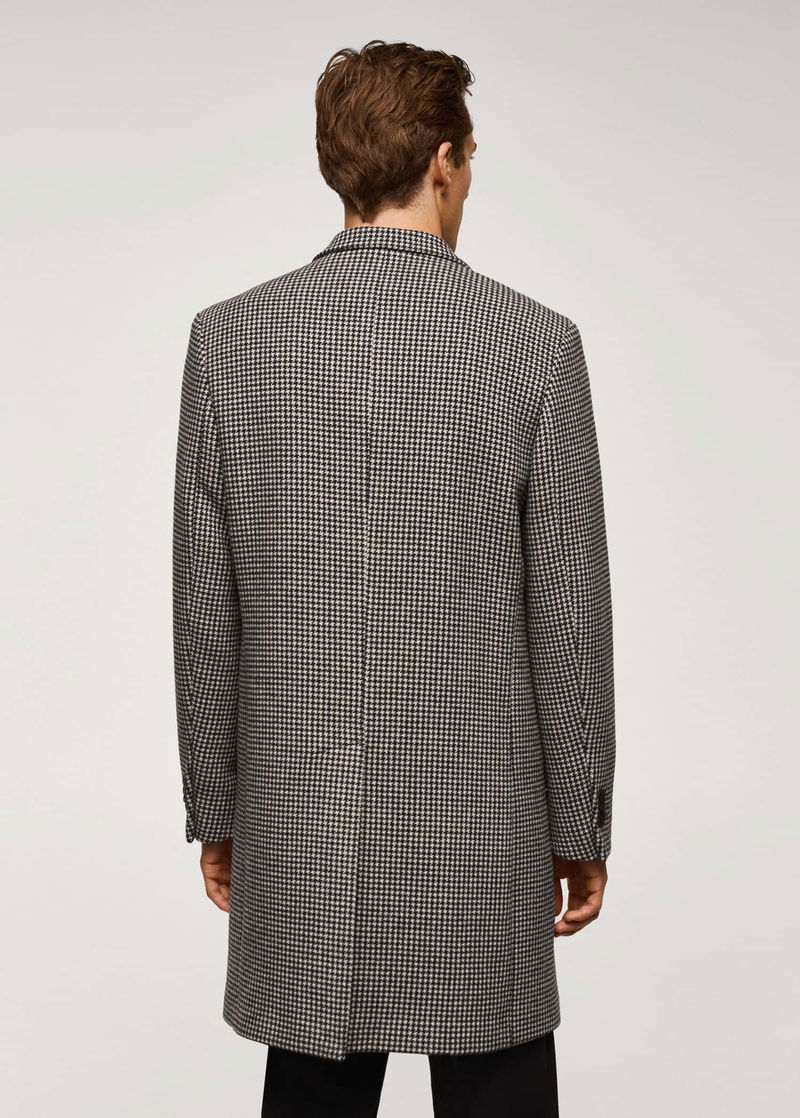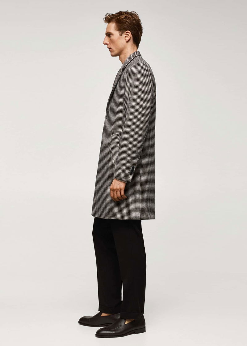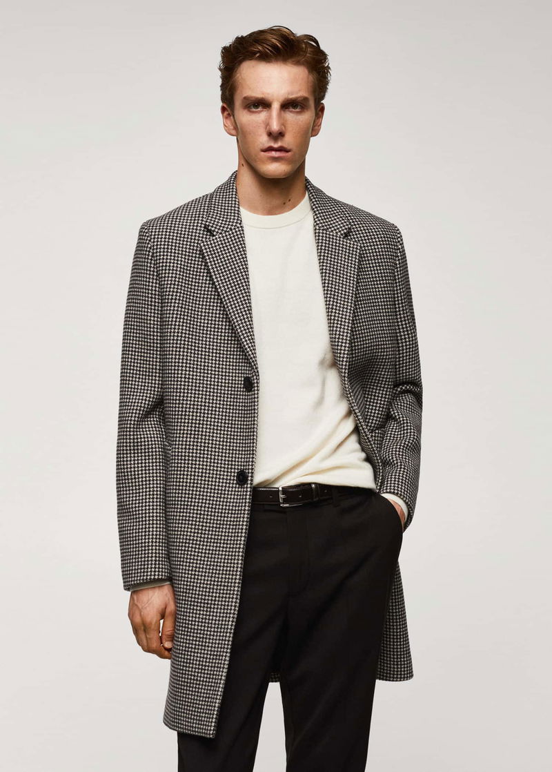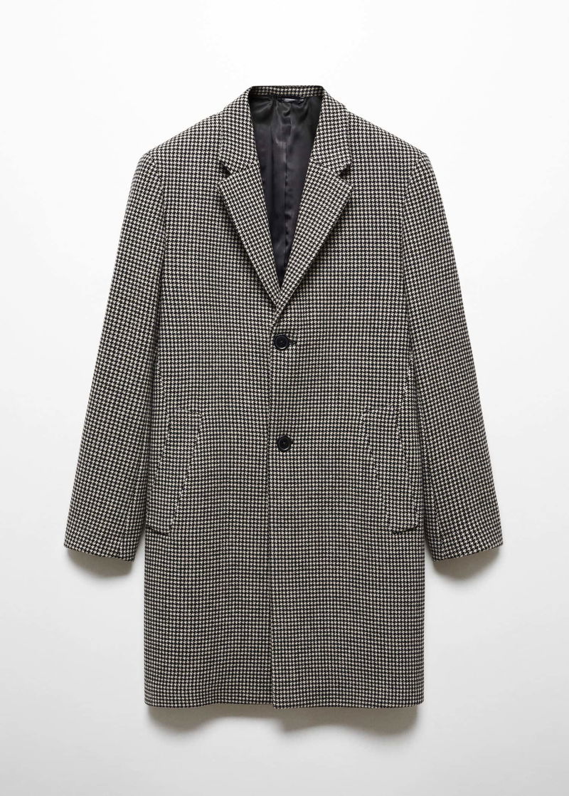 Regular fit. Houndstooth print. Long design. Lapel-collar. Front button closure. Two side welt pockets. Long sleeve with buttoned cuffs. Back-slit hem. Inner pocket. Inner lining.