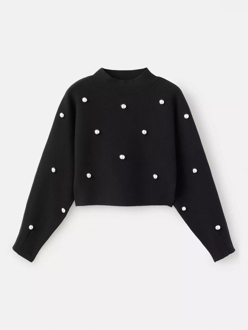 Inoxidab Embellished Cropped Jumper, Black