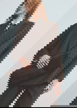 Carefully sketched to a sharp silhouette, this double-breasted blazer jacket from Mango sits at the hip for versatile coverage. Designed with pointed collar lapels, it is blended with wool for quality that will last.
