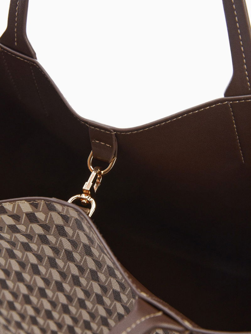 Sticking to the same large, boxy shape, this tote has been reimagined by Mango. Constructed with a repeat M graphic to the outer for a stylish finish, it fastens with a gold-toned clip fastening.