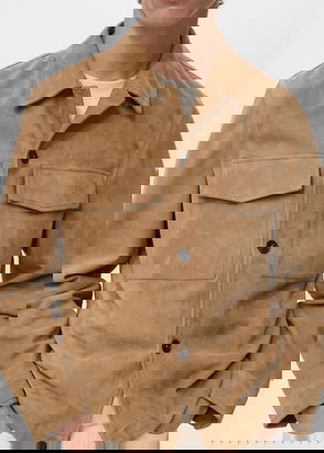 Recycled fabric, Regular fit, Perkins collar with zip closure, Front zip closure, Two pockets with flaps on the front, Long sleeve with buttoned cuffs, Straight hem, Without inner lining.