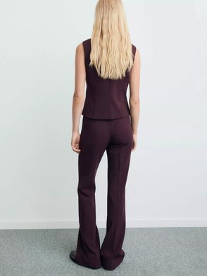 Culotte design, High waist, Cropped design, Two side pockets, Back patch pocket, Pleats detail, Loops, Zip and one button fastening.