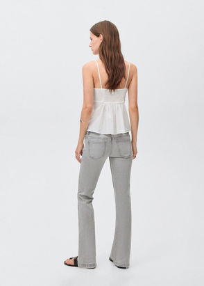 100% cotton fabric. Denim-style cotton fabric. Culotte design. Regular Waist. Belt loops. Zip and button fastening. Adjustable elastic and button waistband. Coin pocket. Two side pockets. Patch pockets on the back. Seamless hem. Frayed trouser hems.