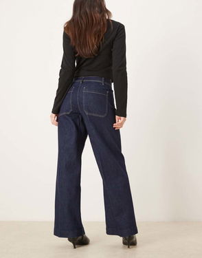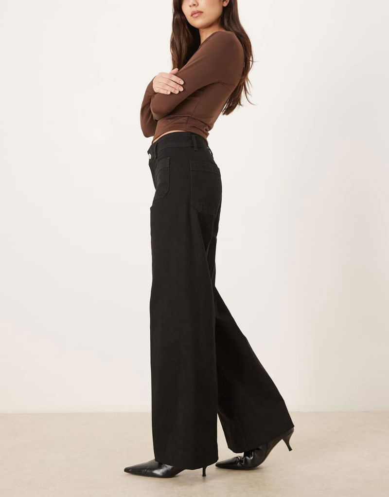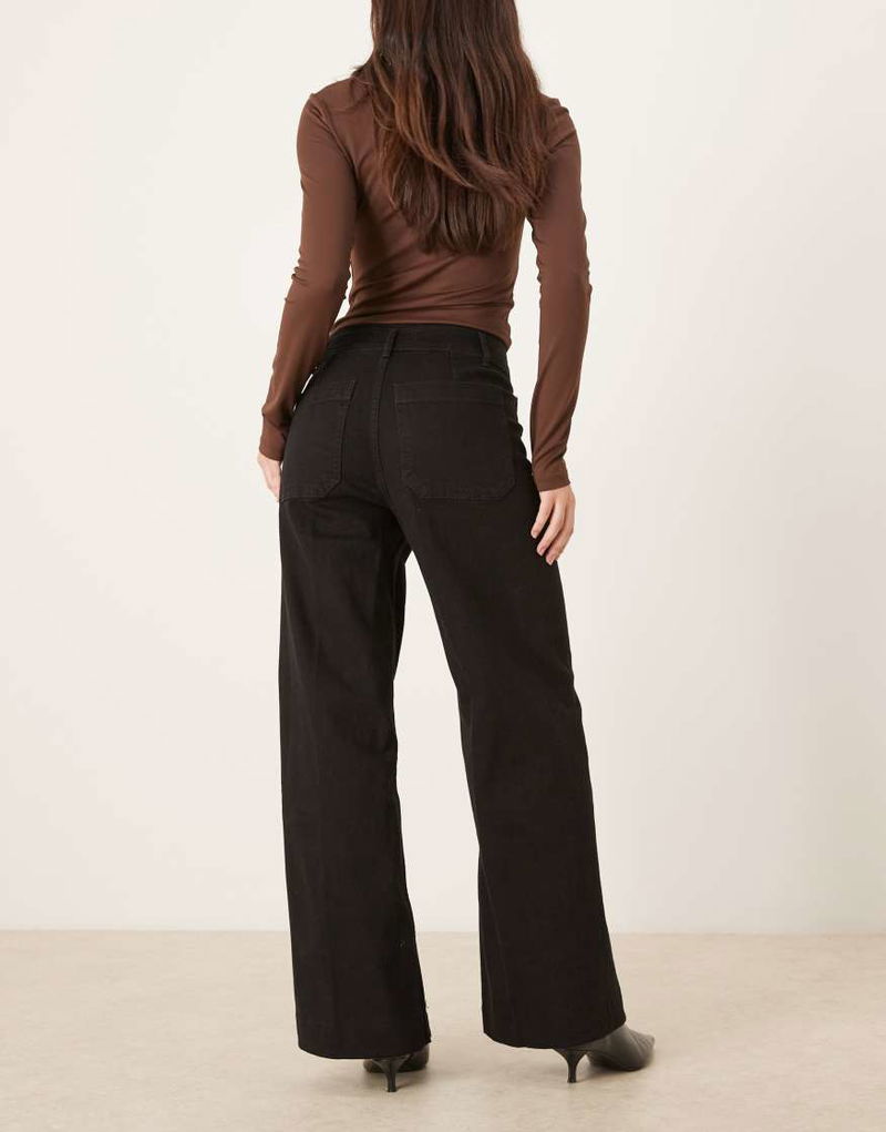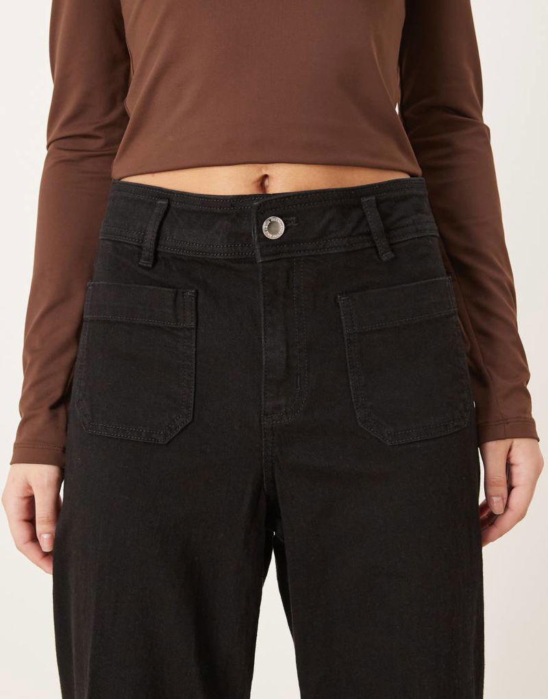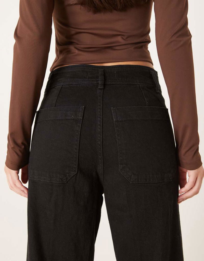 Jessie Cotton Mix Pocket Detail Wide Leg Jean In Black