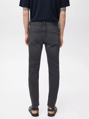 Skinny fit: the tightest fitting jeans. Denim jeans style. Cotton fabric. Medium wash. Belt loops. Zip and button fastening. Two side pockets. Coin pocket. Two patch pockets at the back.