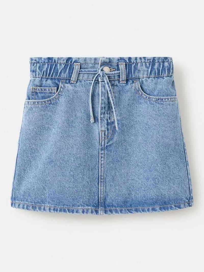 Kids' A-Line Paperbag Waist Mini Skirt, Mid Blue