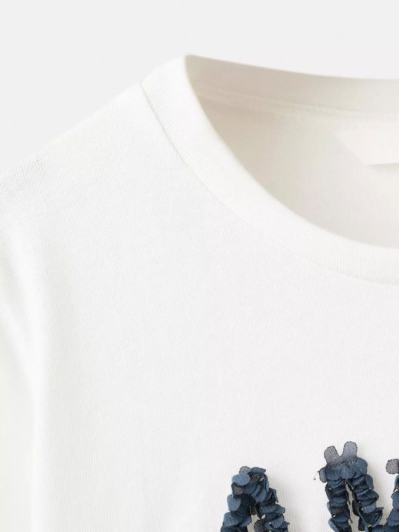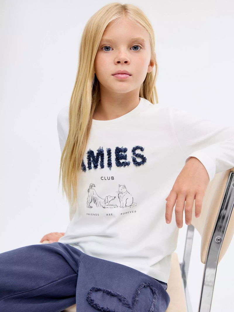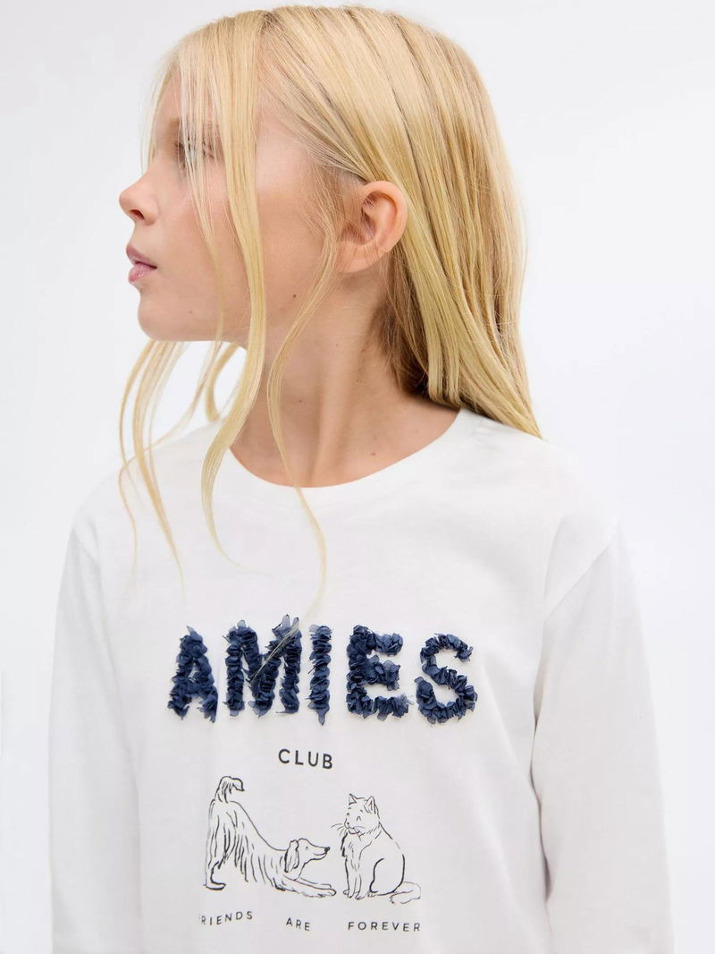 Kids' Amies Cotton Long Sleeved Applique Top, Natural White