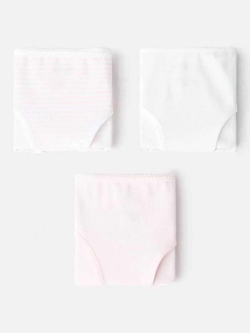 Kids' Basic Plain & Stripe Briefs, Pack Of 3, Pink