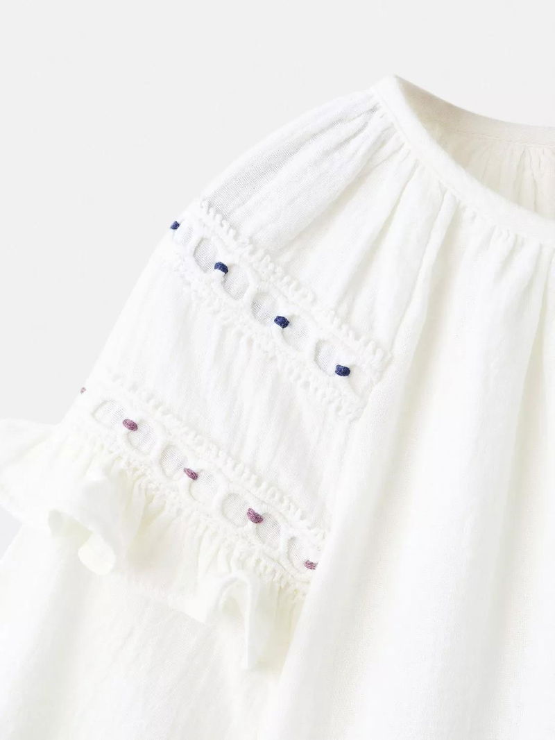Kids' Becca Cotton Ruffle Blouse, Natural White
