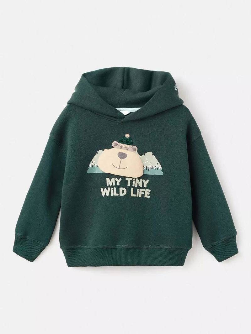 Kids' Cotton Blend Teddy Bear Hoodie, Dark Green