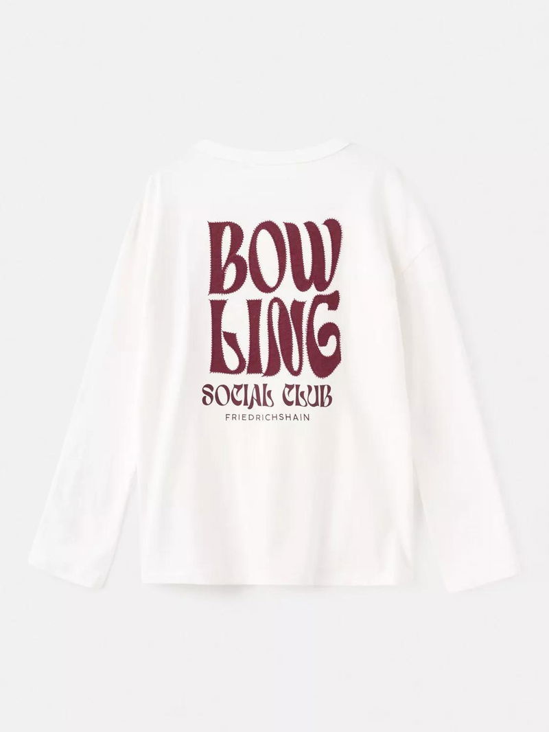 Kids' Cotton Long Sleeved Bowling Print T-Shirt, Natural White