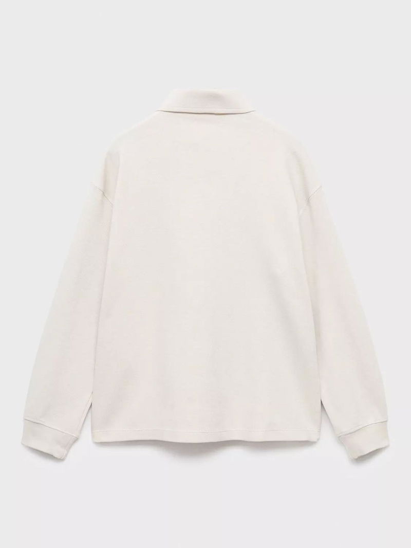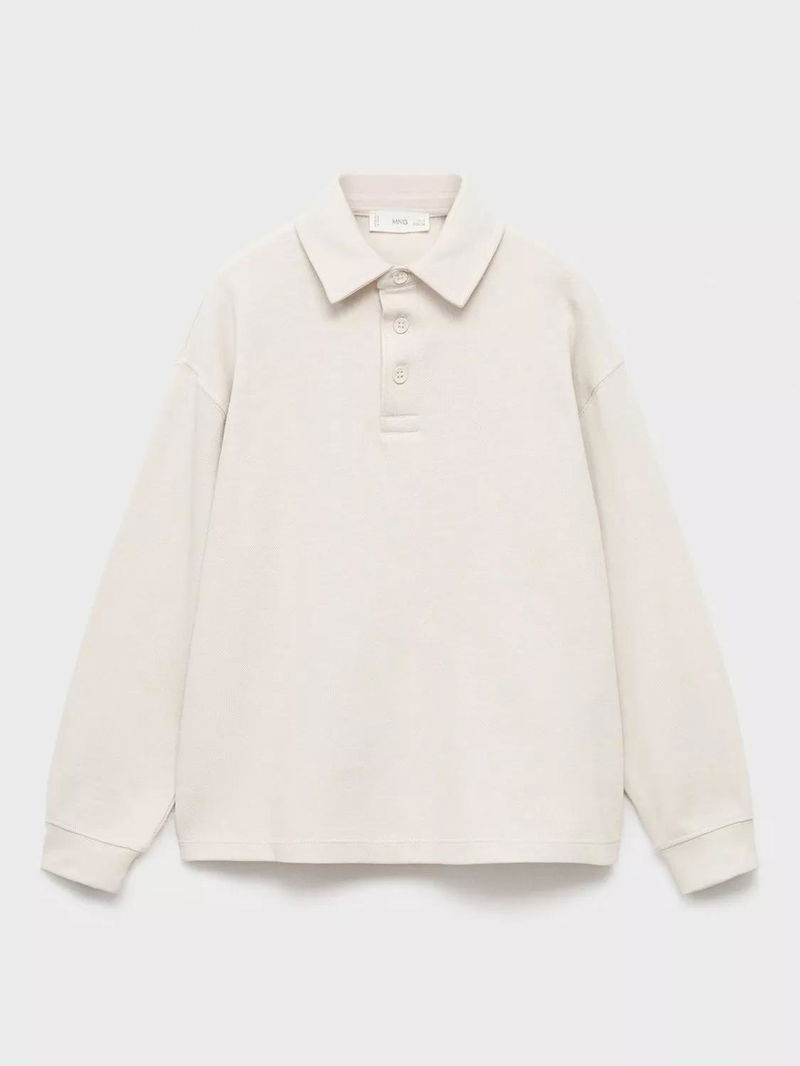 Kids' Cotton Long Sleeved Polo Sweatshirt, Natural White