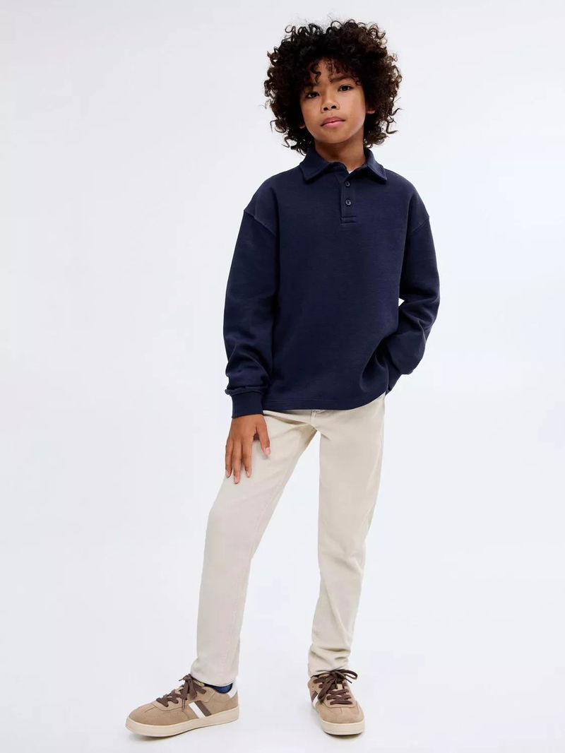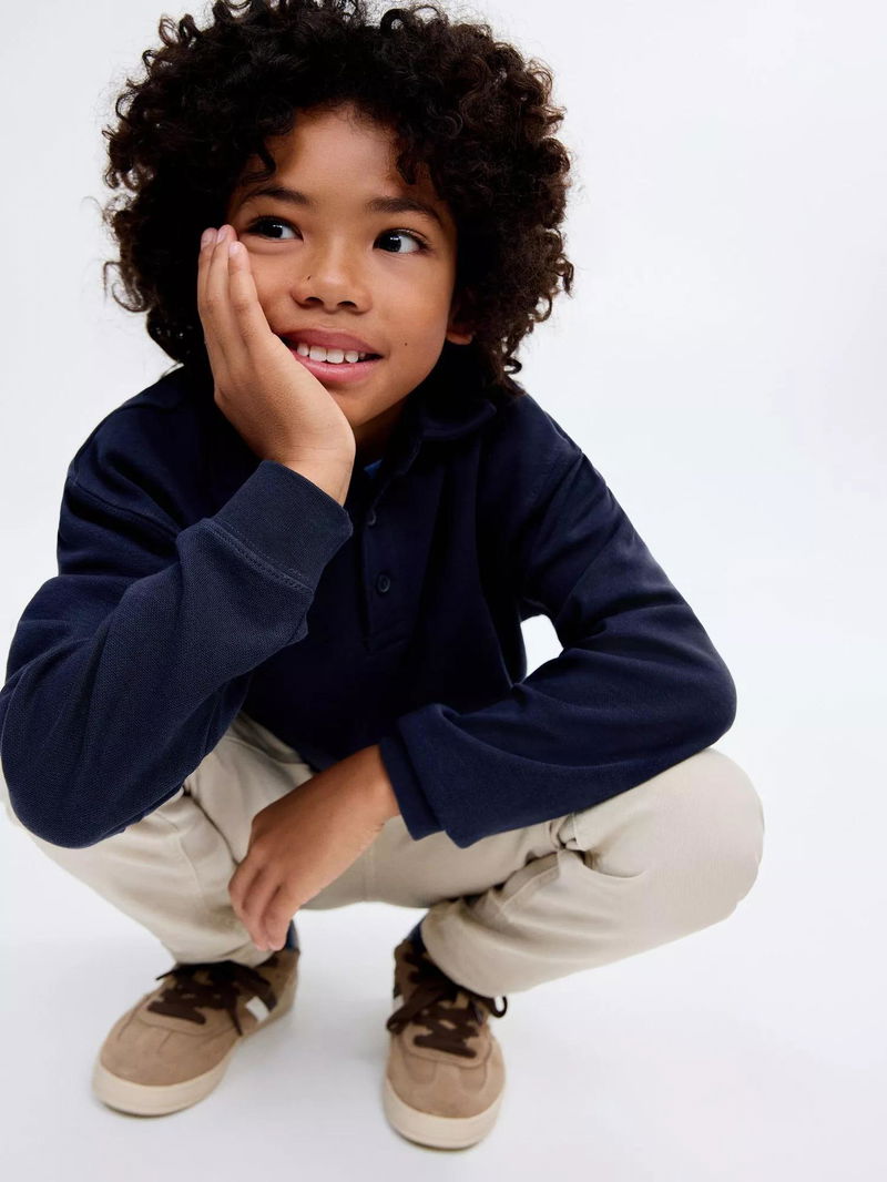 Kids' Cotton Long Sleeved Polo Sweatshirt, Navy