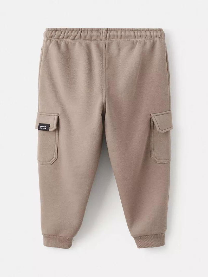 Kids' Cotton Rich Drawstring Cargo Joggers, Brown