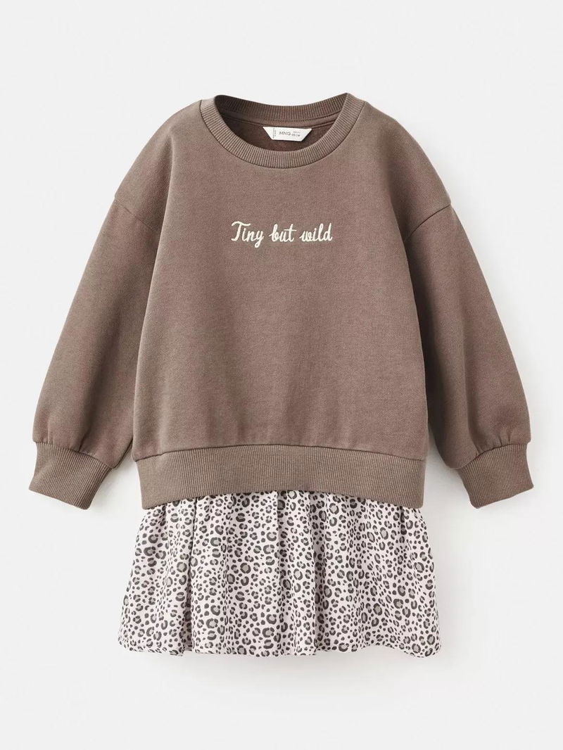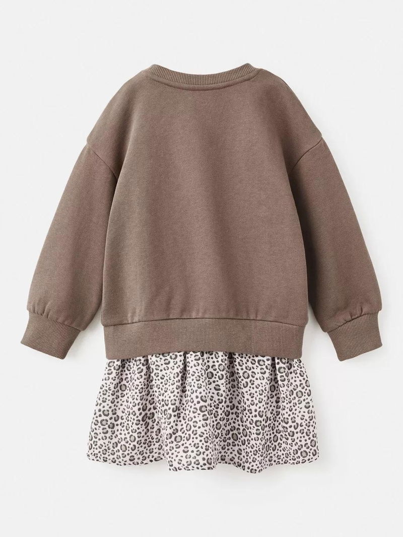 Kids' Cotton Sweatshirt Leopard Dress, Brown