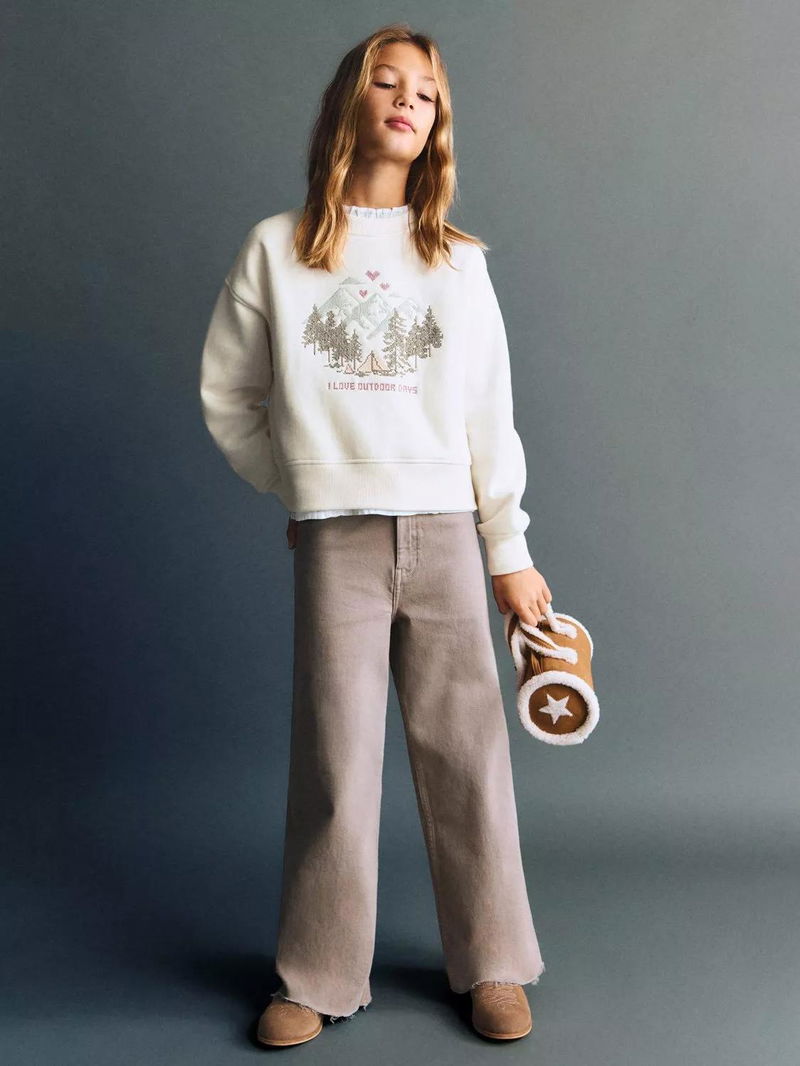 Kids' Cross Stitch Sweatshirt, Natural White