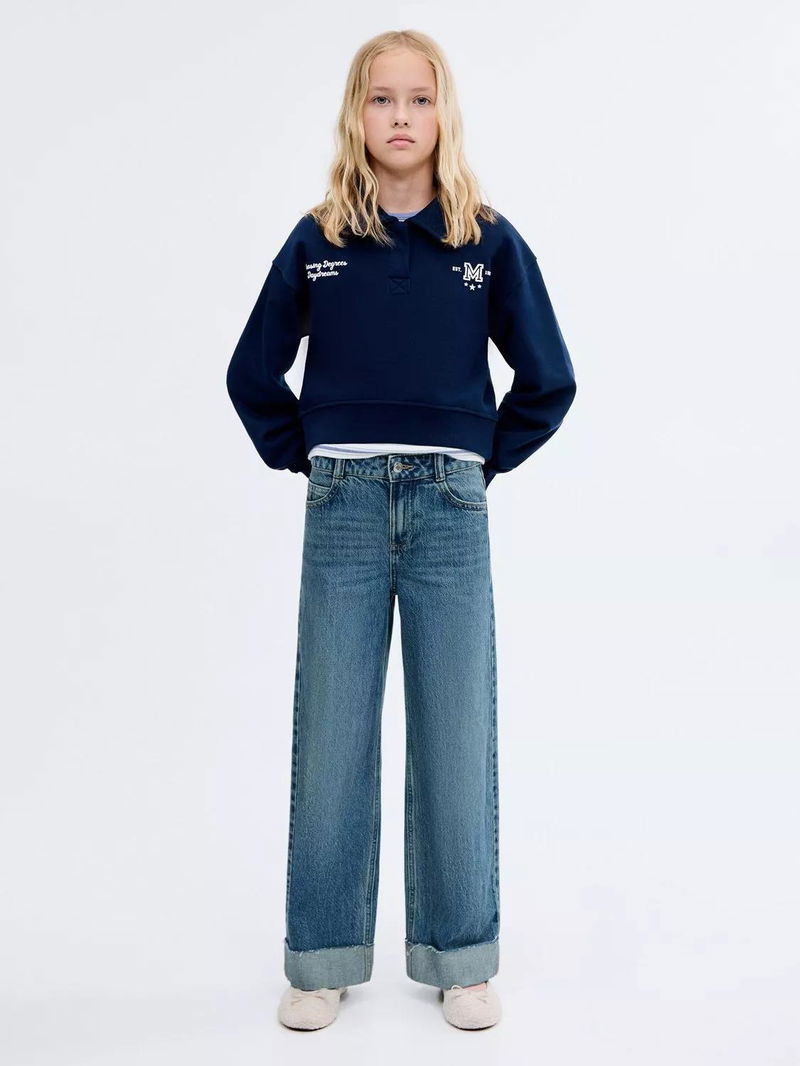 Kids' Denim Wide Leg Jeans, Dark Blue